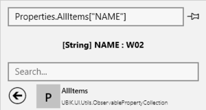 Sometimes it is better to jump start with a specific binding data context instead of one that can be found in the standard UI. For example, while the default data context of a child page is a ContentPageViewModel, the inspection of its Properties.AllItems["NAME"] might be needed more frequently.