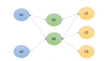 As a demonstration of this feature, see this video. The relations between tasks are defined as in this image, starting at A1 and A2, which are not dependent on any other tasks. The lines (from left to right) indicate dependencies. This means that B2 has tasks A1 and A2 as its predecessors, for example.
