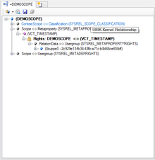 In general this view style behaves like the "Relation content" view style. In addition to that this view style allows the user to grant group rights in the ACM to metaproperties assigned to a scope.