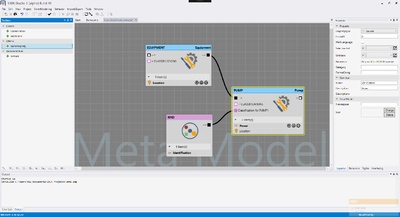 In the middle of the screen, there is a worksheet that can be used to draw the project structure on. Add new or existing models by dragging them from the pickers on the left of the screen to the worksheet area in the middle. Connect the models using lines in order to define the models' dependencies on each other. When a model is selected, it can be edited using inspector tools on the right of the screen.