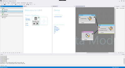 UBIK® SmartStudio is designed as an integrated developer environment (IDE) and administration tool. With UBIK® SmartStudio, you can work on a project and transport the results, and you can interact with a UBIK® Environment (data base, web services, etc.). Also, you can import meta definitions from external files (e.g., from Excel worksheets describing a customer's entities).